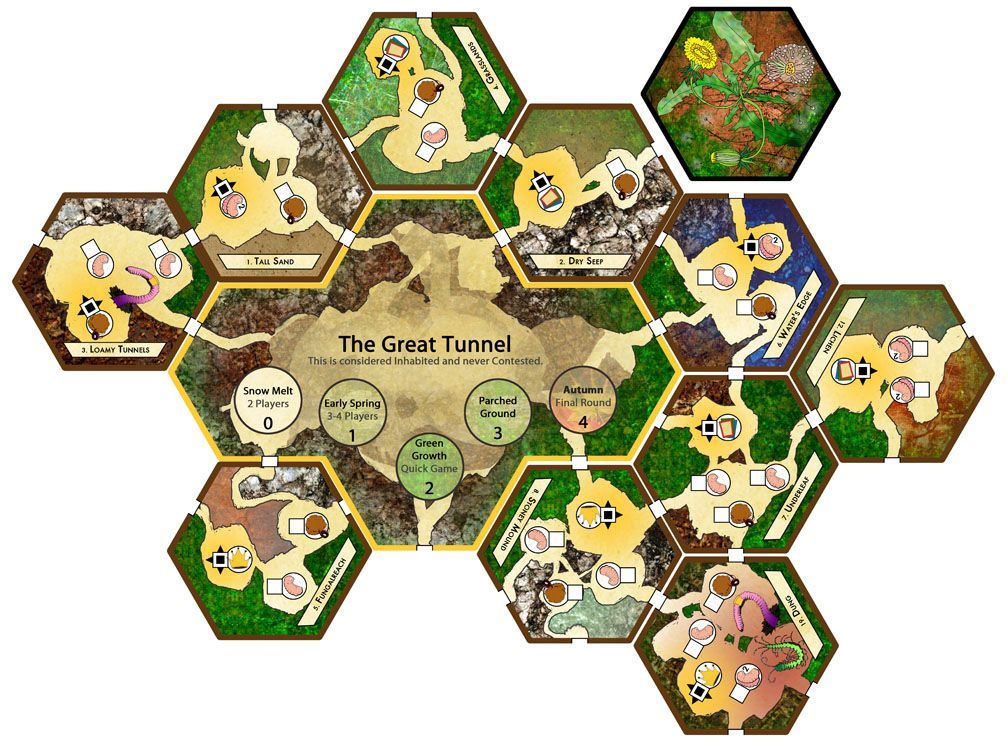 Великий туннель, центр муравьиной вселенной, готов и ждёт разведчиков. Первый игрок маркирует ход (ранняя весна, оттепель или пора цветения) и выбирает действие. Всего их пять, но отдыхать в начале игры нельзя, так что остаётся марш, разведка, добыча и использование карты.