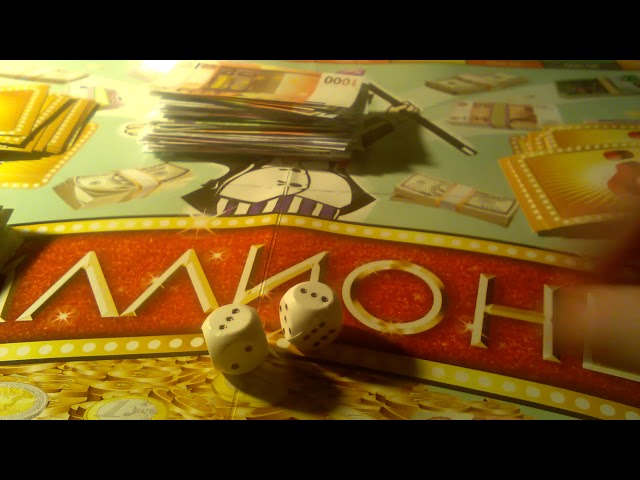 Начали все вместе играть и немного запутались. То, что нужно покупать компании и потом получать за них арендную плату — было понятно. Но в этом варианте — “Миллионере” — добавлена еще покупка акций (и смена курса акций в течение игры), игра на бирже, аукционы, джек-пот (игра на “одноруком бандите”), карточки “шанс” и “фортуна”, налоги, штрафы, страховые полисы, торги, и что-то-там-еще.