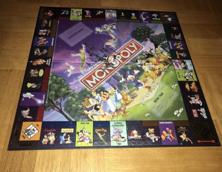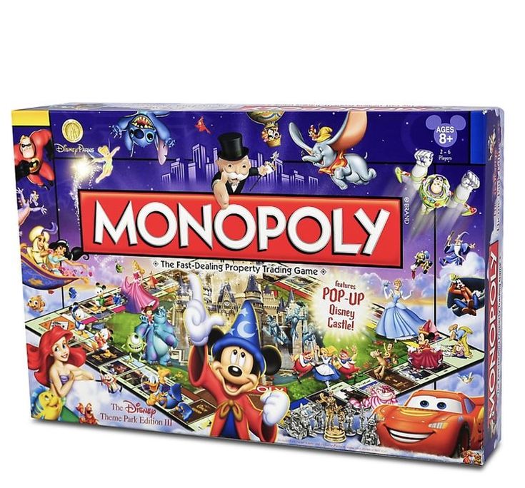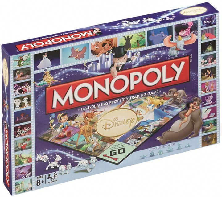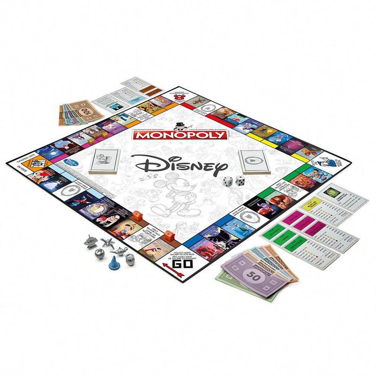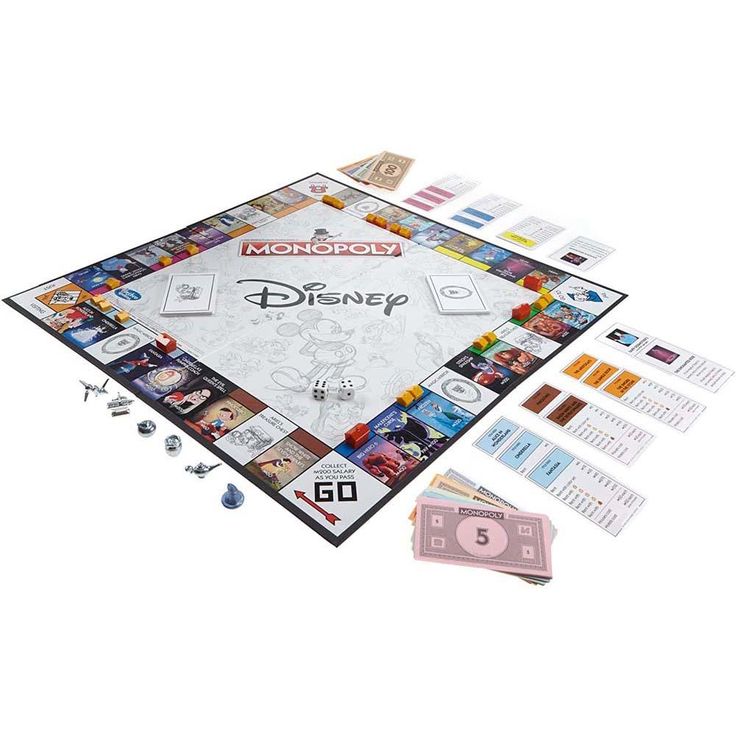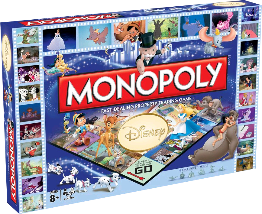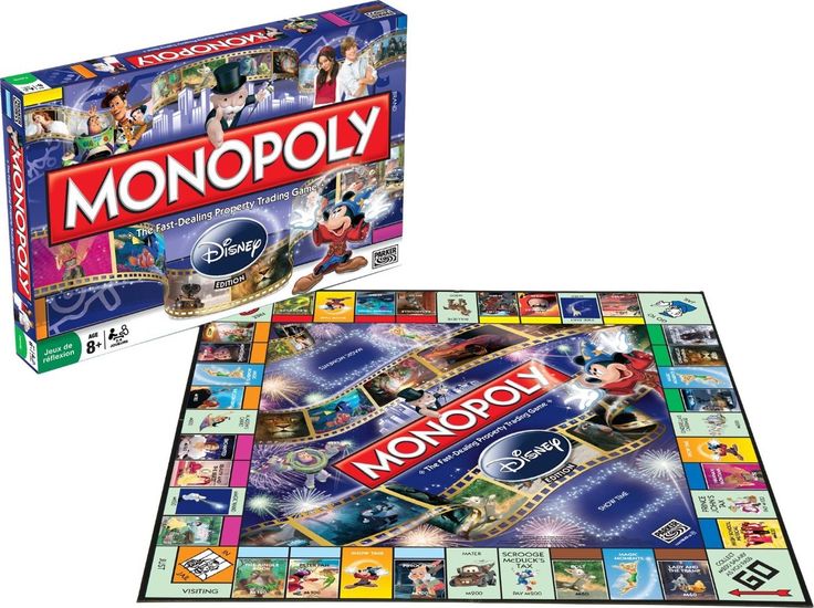 Монополия: Издание Disney было выпущено в 2001 году компанией Hasbro в сотрудничестве с Disney. В нем представлено более 22 различных франшиз фильмов из разных моментов истории Диснея, от «Пароходика Вилли» до «Истории игрушек».