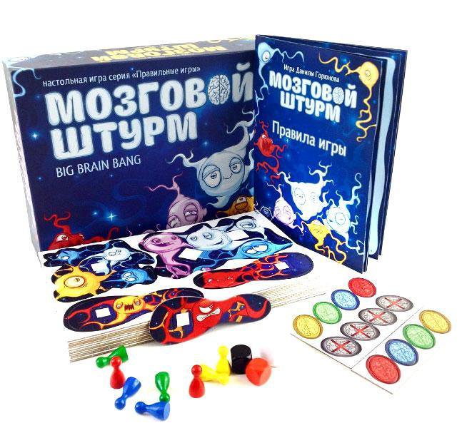 Настольная игра «Мозговой штурм» — остроумная и оригинальная версия классических игр на меткость, таких как петанк или «Чапаев». Может быть, она не совсем точно моделирует происходящее в человеческом мозгу (в конце концов, даже учёные не до конца во всём этом разобрались!), но наверняка доставит немало удовольствия игрокам любого возраста.