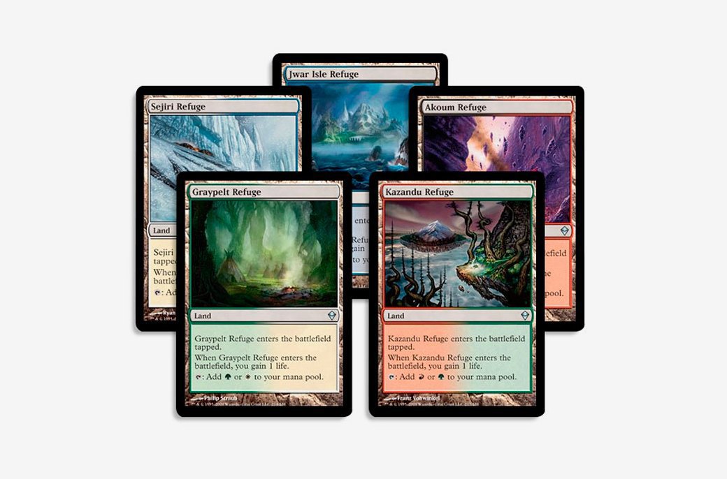 Земли с добычей — действительно лучшие земли в этих трехцветных колодах. Это связано с тем, что, несмотря на то, что приносящие земли находят только два разных типа земли, они могут найти все три цвета нашей маны благодаря возможности сочетать их с шоковыми землями, которые имеют базовые типы земель.