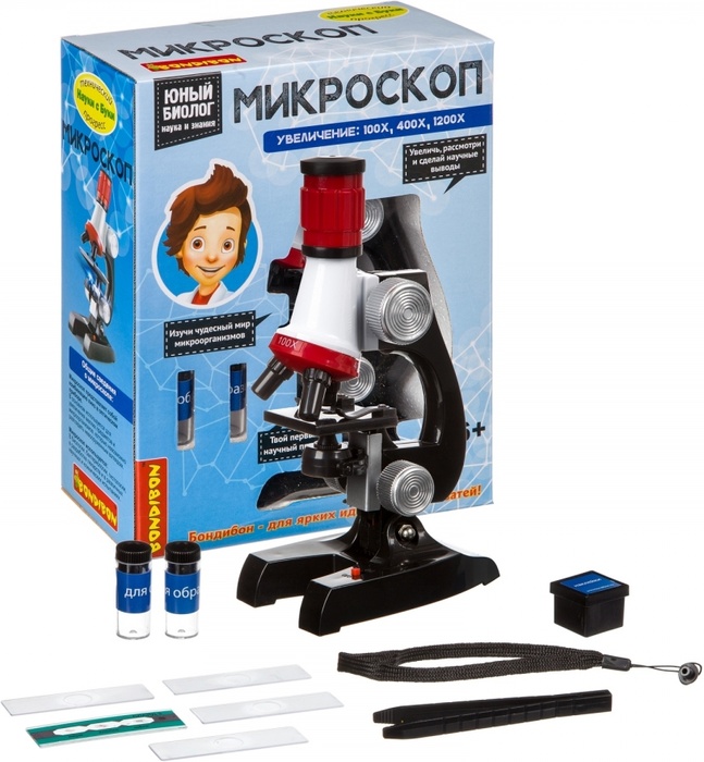Микроскоп Юный биолог, кратность увеличения 450х, 200х, 100х, с подсветкой- Главная