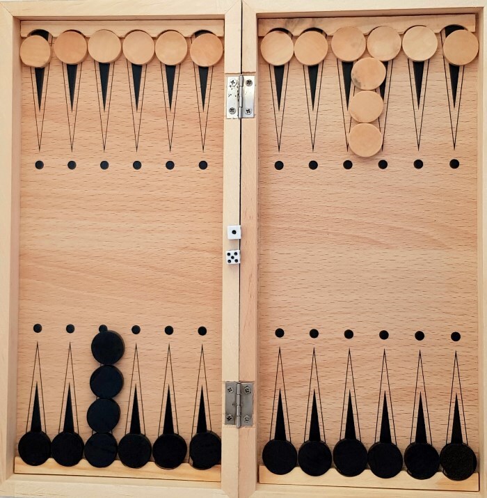 Нарды короткие (английское название backgammon) представляют собой настольную игру с использованием игральных костей и доски. В игре участвуют двое игроков, у которых имеется по пятнадцать фишек разного цвета, по паре игральных костей и по стаканчику, в котором кости перемешиваются. Кроме того, в игре используется так называемый дабл-куб (doubling cube). Игроки перемещают свои фишки по доске согласно количеству очков, выпавшему на игральных костях после того, как их выбрасывают. Игрок, который первым проведет все свои фишки в свой Дом, а затем снимет их с доски, считается победителем в данной партии.
