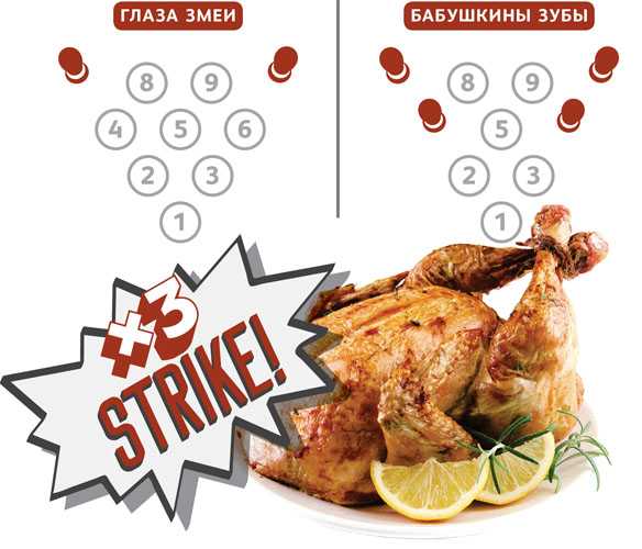 Если сбить всю десятку получается со второго раза, это спэр. Он приносит 10 баллов плюс количество сбитых кеглей в следующем броске.