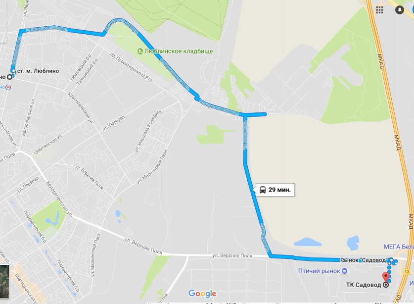 Направление: Метро «Выхино» — Рынок «Садовод» -