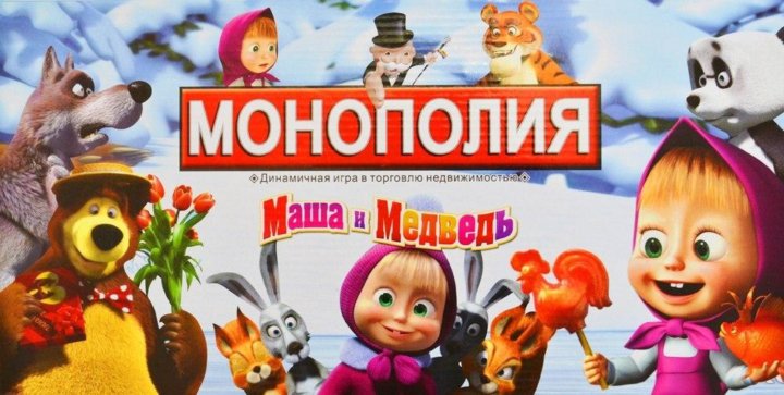 Вы знакомы с девочкой Машей? И с большим и добрым Медведем, который вечно страдает от проказ этой девочки? Конечно, да! Герои мультфильма Маша и Медведь теперь в настольной игре Монополия Джуниор: Маша и Медведь. Игра рассчитана на игроков на 2 — 4 игроков от пяти лет. Всё оформление сделано с использованием известных персонажей.