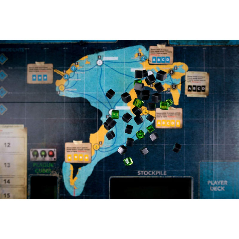 Если в какой-то момент вам нужно убрать несуществующий куб снабжения, вместо него в город добавляется куб чумы. Если у вас есть 8 таких «происшествий» до выполнения вашей задачи, вы проиграли.