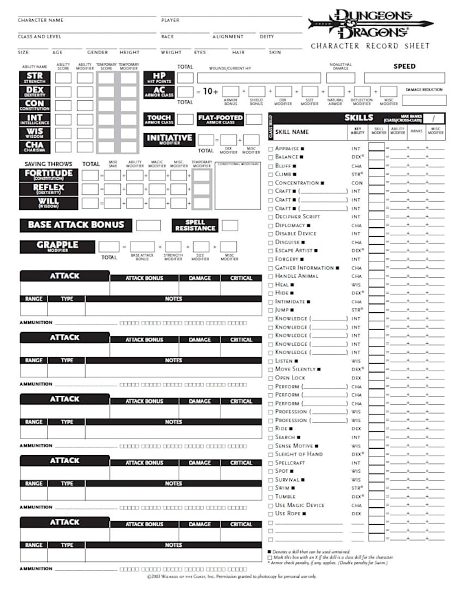 - Атаки в ближнем бою. Вы заметите четыре значка, так как каждый раз, когда ваш базовый модификатор атаки (БМА) достигает 5, вы получаете дополнительную атаку. В настоящее время мы имеем одну атаку с попаданием в -1 (мы расскажем об этом чуть позднее).