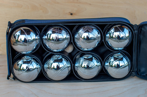 Материал буля тоже другой. Шары для игры в петанк сделаны из стали и не имеют окраски. Шары для соревнований полые, но шары для отдыха могут быть заполнены песком.