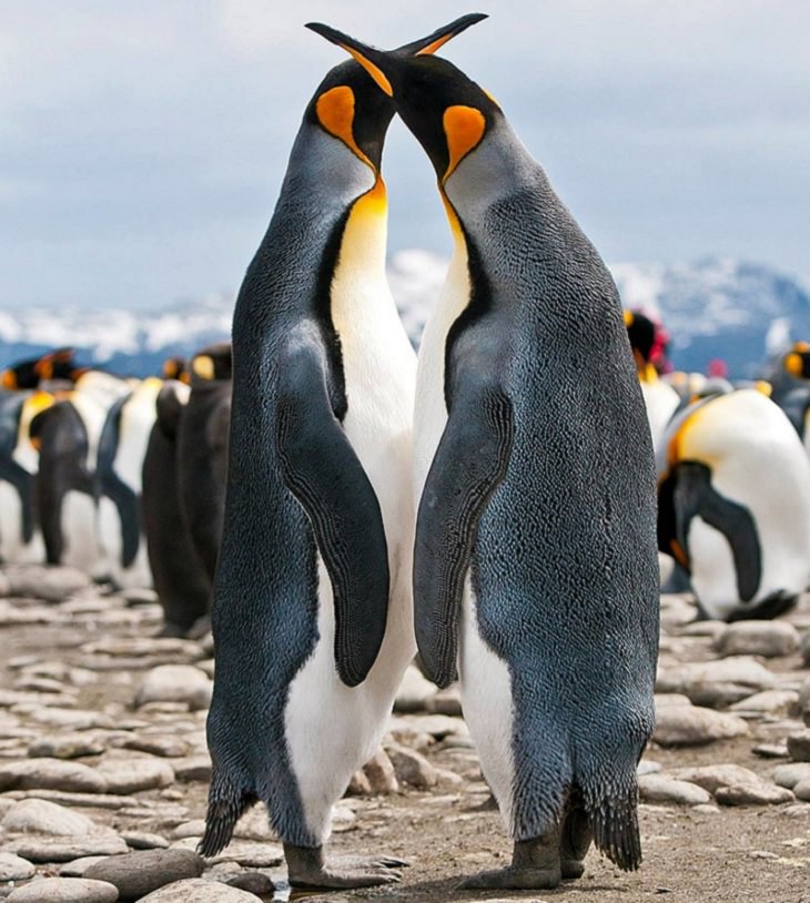 В Антарктиде обитают самые крупные в мире императорские пингвины. Отдельные их особи достигают 130 см в высоту! Чуть меньше рост королевских пингвинов — до 1 метра. Наибольшие популяции последних обитают на острове Южная Георгия. А вот императорских можно встретить на льдинах у побережья Антарктиды.