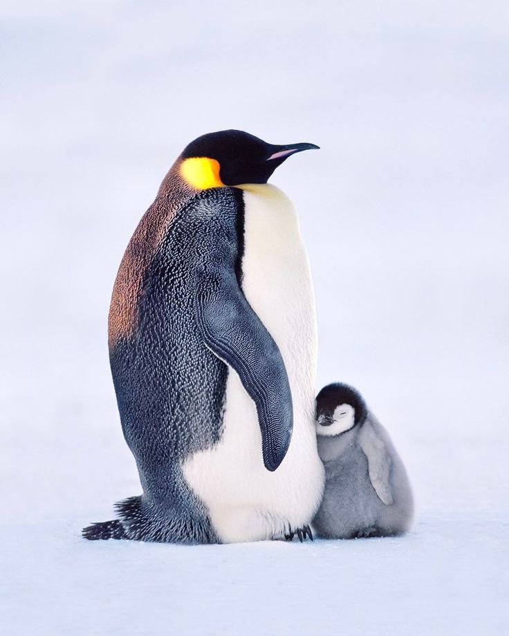 После вылупления птенец императорского пингвина удваивается в размере каждые две недели, если мать обеспечивает достаточное количество пищи.