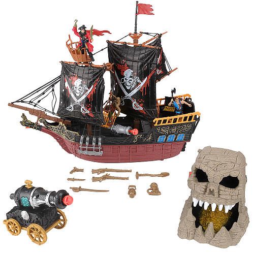 - В нем есть потайной люк, в упряжку корабля можно положить другие игрушки, и даже есть доска, по которой можно заставить пиратов ходить по доске!