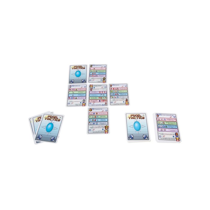 В игре в основном участвуют два человека, сталкивающиеся друг с другом с одинаковыми колодами из 25 карт. Теперь, когда вселенная Pixel Tactic расширилась до трех отдельных игр, количество карт увеличилось до 75 уникальных карт (не считая промо), если у вас есть все три игры. Это увеличивает количество вариантов, доступных игроку при игре в игры Constructed или Duel Draw (правила для этих режимов см. на сайте www.pixel-tactics.com).