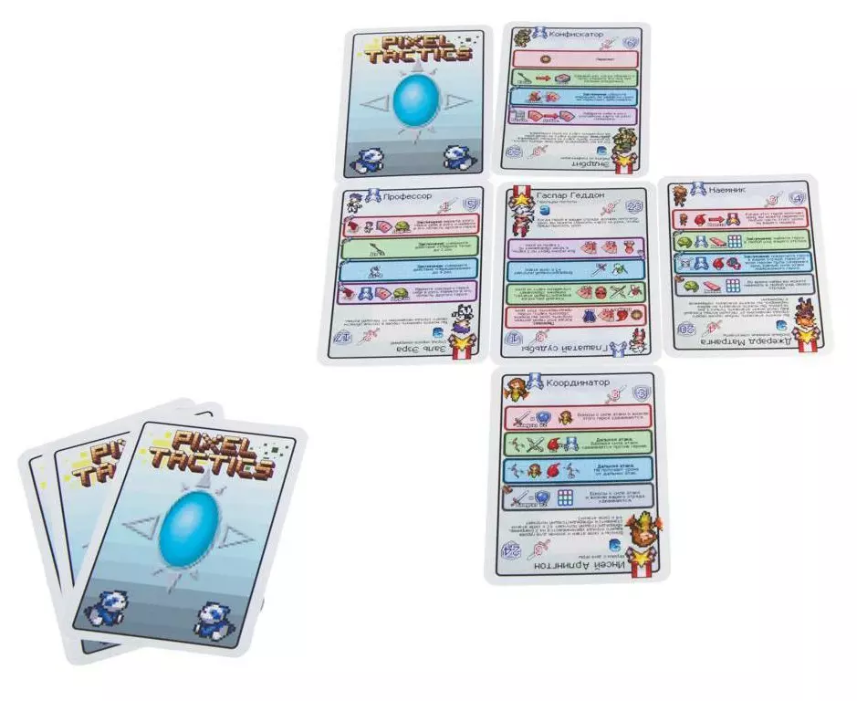 Pixel Tactics — это карточная игра для двух игроков, воссоздающая атмосферу стратегической ролевой игры. Каждый игрок играет с колодой персонажей, и каждого персонажа можно использовать одним из пяти различных способов.