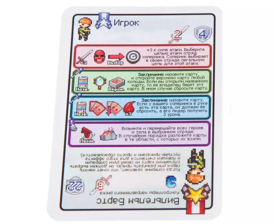 Это продолжение настольной игры Пиксель Тактикс. В неё можно играть отдельно, а можно объединить с предыдущими колодами — такой получится замес! Берите друга-гика, который так же, как вы, фанатеет по восьмибитным ретро-играм, и начинайте бой. Кроме боя, тут ничего другого делать и не надо.