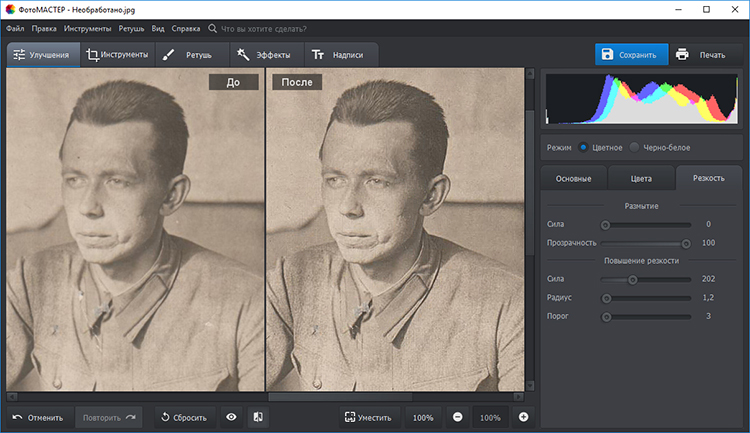 Программа обладает мощными средствами оптимизации повышения резкости под конкретные ситуации. Например, с помощью нее можно подготавливать снимки к печати в фотосалоне.