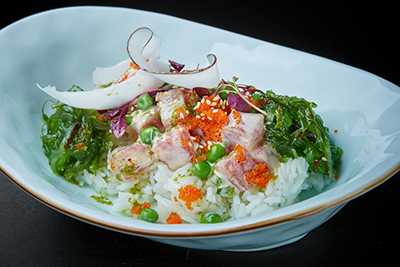 Hong Kong В китайском ресторане у парка «Сокольники» есть и гавайская классика: тут блюдо, правда, окрестили «Пок», но суть от этого не поменялась: горка риса и рыба. В меню включили сочетания с тунцом, зеленым горошком, тобико и спайси-соусом. Также существует опция с лососем, редькой, маринованной свеклой, кукурузой, кешью и жареным авокадо. Кстати, поке явно входит в число любимых рецептов бренд-шефа этого ресторана Дмитрия Шуршакова, так что вы сможете найти заветную комбинацию риса и рыбы и в его Cooker’s, и в «Никуда не едем». Детали |