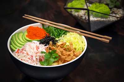 Поке — гавайское блюдо, которое сейчас очень популярно в Америке и Европе, а с недавних пор становится все более известным и в России. Рис (или другая крупа) или зелень, сырая рыба и морепродукты, кисло-сладкие соусы — и множество начинок на любой вкус.