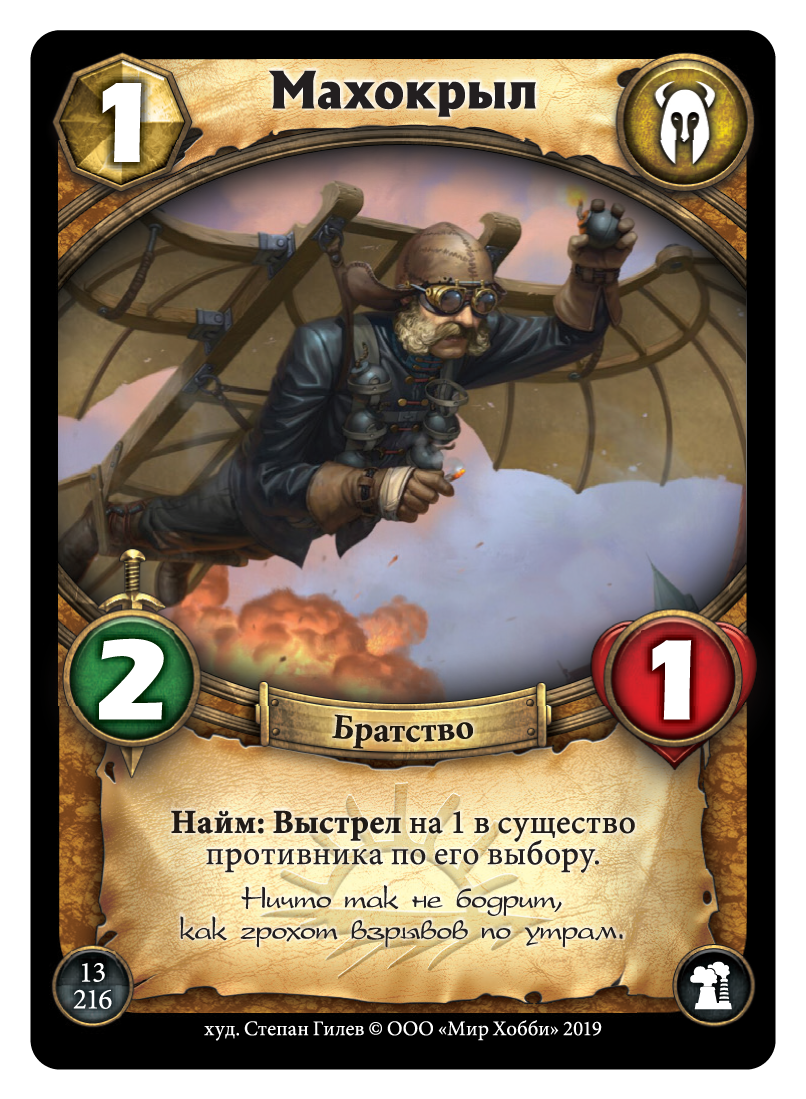 Весь игровой процесс, как Вы уже поняли, строится на картах. В своей колоде Вы должны иметь одну карту героя, которая является Вашим альтер эго в игре, обладает определённым запасом жизни, способностью и стихией. Всего стихий пять: степи, горы, лес, болота, тьма. Карты без стихии – нейтральные. Помимо карты героя, в колоде Вы можете иметь от 40 карт той стихии, к которой принадлежит Ваш герой, но не более трёх копий одной и той же карты.