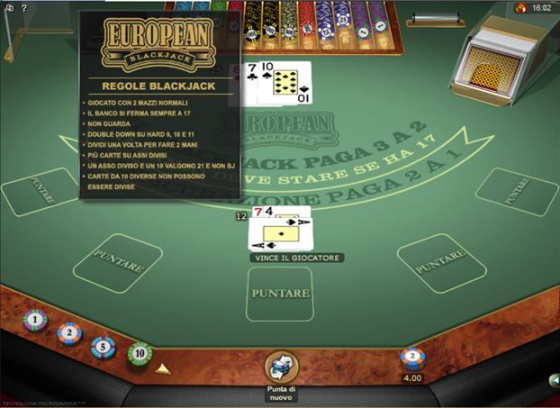 Онлайн-игра в Европейский блэкджекВажно избежать превышения по баллам.