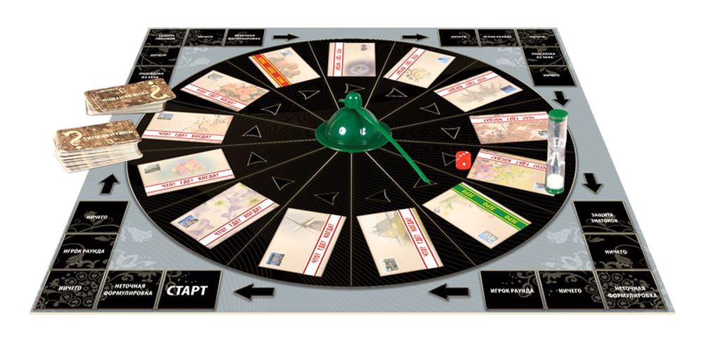 Итак, представьте: в игровом зале располагается стол, разделенный на сектора, на каждом из которых лежит вопрос в письме от телезрителя. За столом сидит команда знатоков в количестве шести человек, включая капитана. Посередине стола расположен волчок, указывающий после его раскручивания на выпавший вопрос.