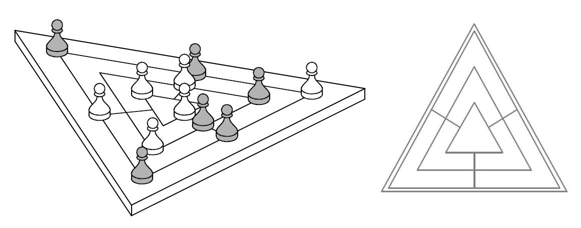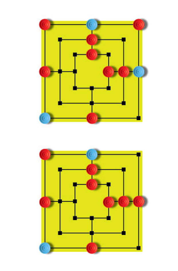 Вообще, главная изюминка этой игры – колоссальное множество придуманных для неё разнообразных досок: они отличаются количеством перекрестий и, соответственно, «мельниц», которые на них можно построить.