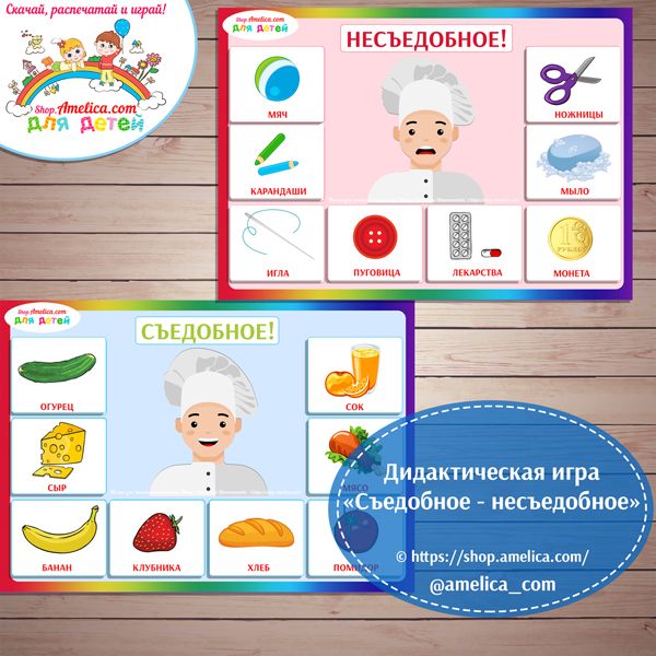 Развлечение Съедобное Несъедобное хорошо подойдет для ребенка от 5 лет. Оно помогает: