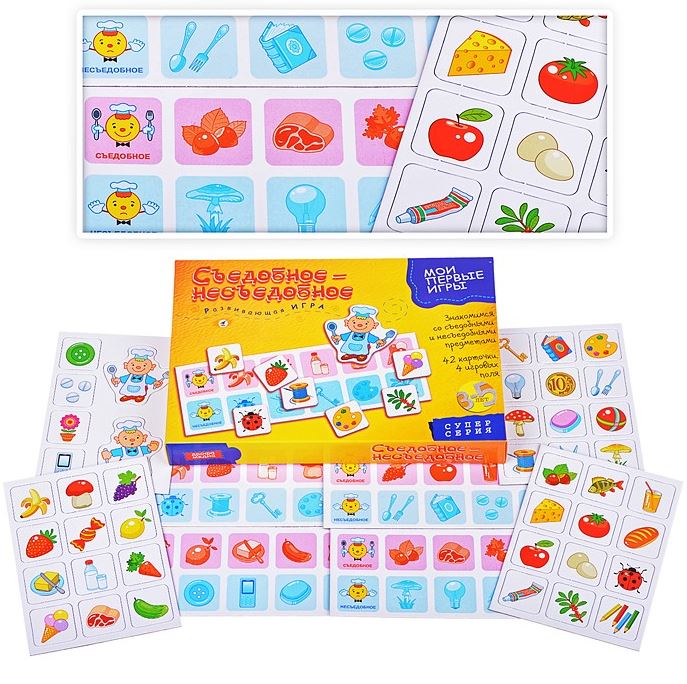 Съедобное-несъедобное предназначается для дошкольников и детей младшего и старшего возраста. В простой и увлекательной игре каждый участник научится определять и запоминать, что можно употреблять в пищу, а что – нет.