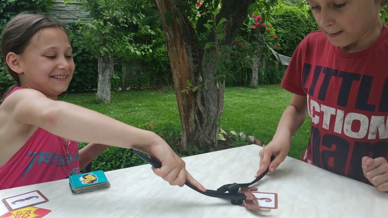 Очень веселая динамичная игра для всей семьи. Играть могут до семи человек. Правила очень просты: игроки переворачивают карточки, и шлепают по ним усами на держателях с присосками. Каждый игрок должен опередить соперника и шлепнуть по усам своей формы или цвета. Второй вариант для игры всемером: один ведущий выбрасывает карты, а шестеро игроков шлепают по ним.