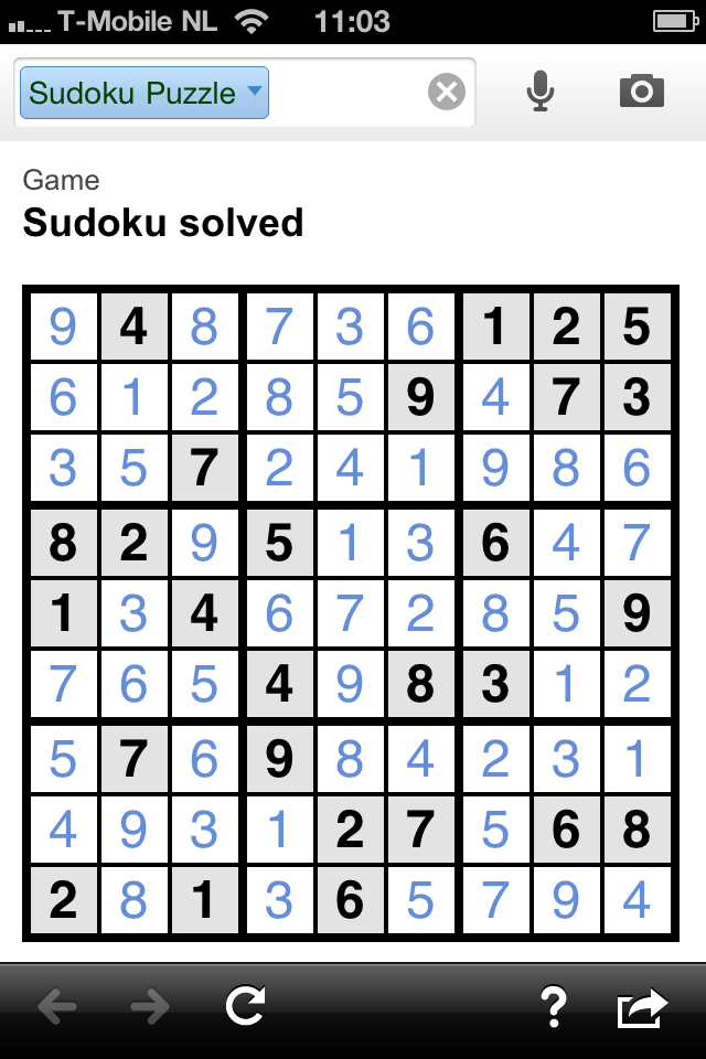 Сочетание этих трех правил, согласно которым каждое число должно появляться один раз и только один раз в строке, столбце и поле, позволяет вы, чтобы выяснить, где числа разрешено идти. Пример показан справа.