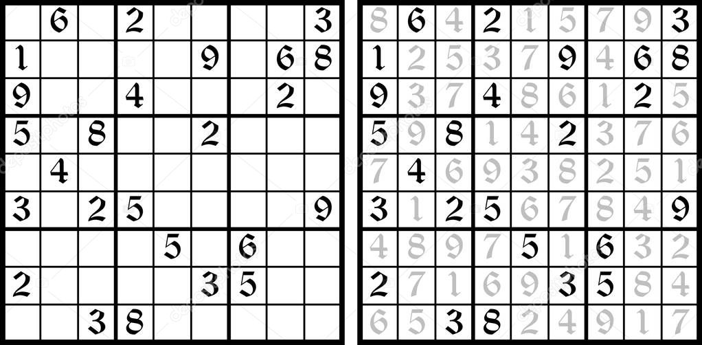 Цель та же — заполнить пустые ячейки недостающими цифрами, соблюдая одно основное правило — не должно быть повторений одной и той же цифры в строке, столбце и секторе. Однако, в средних Судоку, в самом начале игры, поле содержит меньше заполненных ячеек, что усложняет поиск правильного положения недостающих.