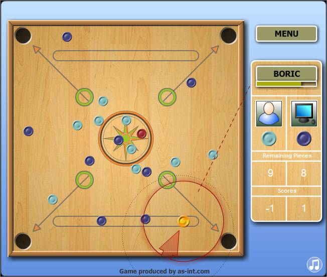 В самой простой форме цель Carom — набирать очки, которые игроки называют «счетчиками». Вы делаете это, отбивая (каром) свой биток от битка соперника и прицельного шара одним ударом.