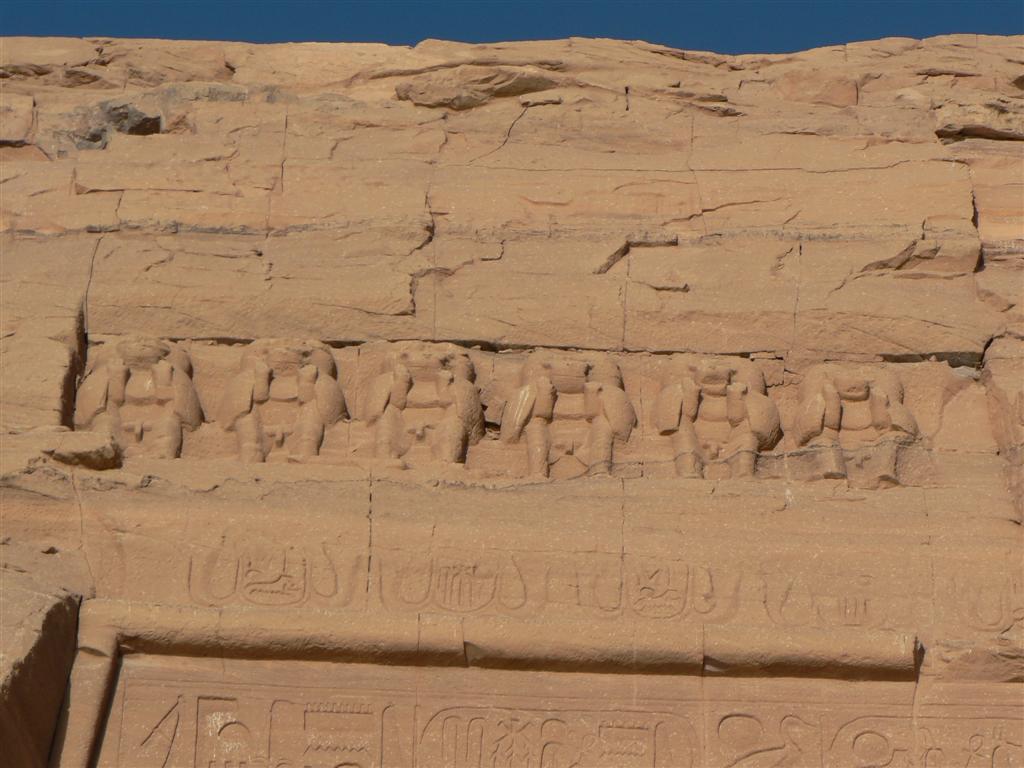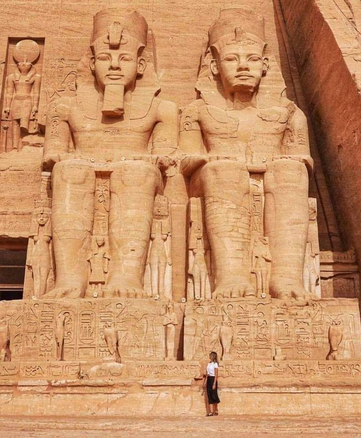 Посвященный богам солнца, храм простирается на 185 футов в скалу через серию из трех возвышающихся залов. Сцены изображают Рамзеса II в битве при Кадеше, а также фараона и его главную жену Нефертари, делающих подношения богам солнца. Рамзес приказал построить второй, меньший по размеру храм для Нефертари.