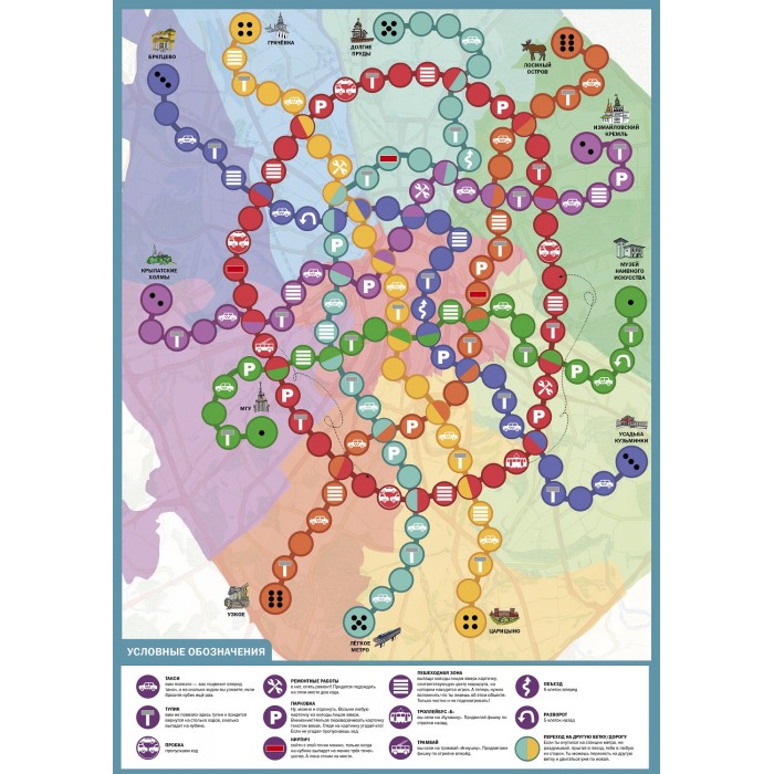 - Игровое поле — карта Москвы с разными маршрутами и игра на обратной стороне,
