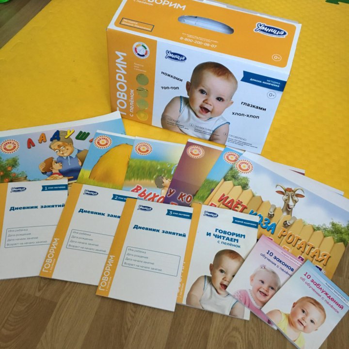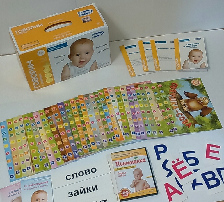 Набор создан специально для родителей, для занятий по нему не требуется педагогических навыков или знаний. Он рассчитан на длительный срок занятий. Идеален для детей, которые ещё не говорят или только произносят первые слова.