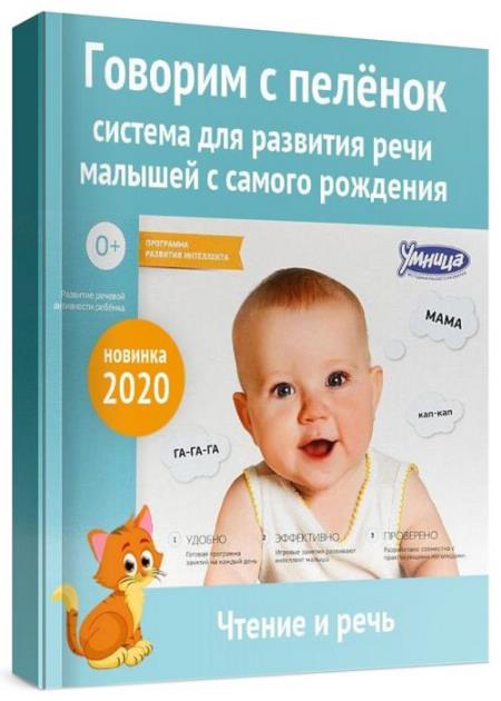 «Говорим с пелёнок» – это готовая система развития речи малыша. Разнообразные материалы, тщательно подобранные командой специалистов и охватывающие все этапы развития речи, без труда увлекают в полезные игры и занятия всю семью. А гибкая программа поощряет правильное взаимодействие между родителями и ребёнком. Именно так вы лучше всего поддержите малыша в одном из главных жизненных этапов – развитии речи!