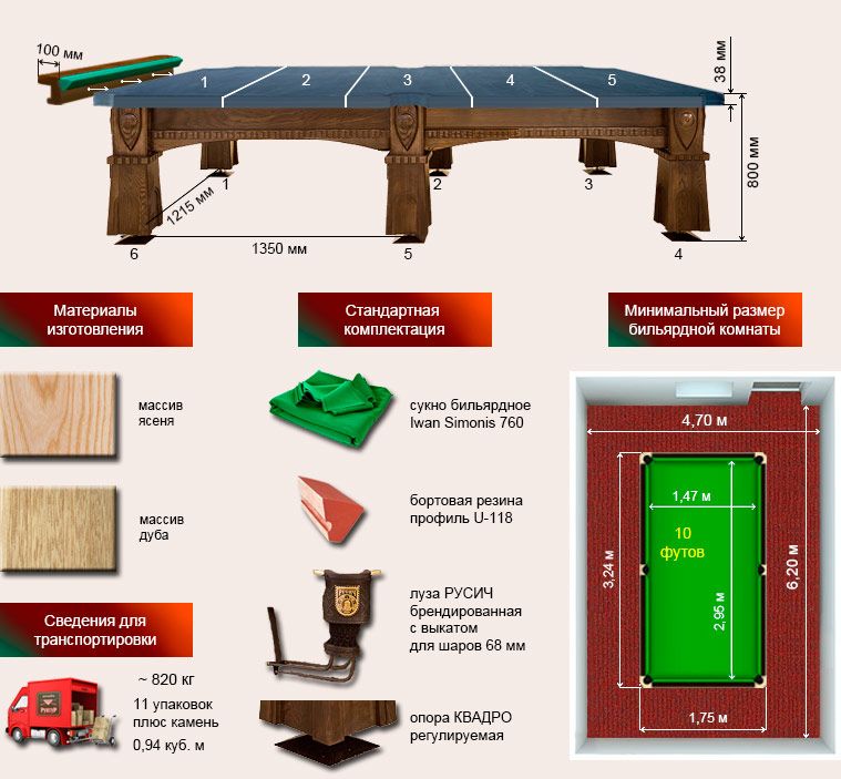 Бильярд размеры русский
