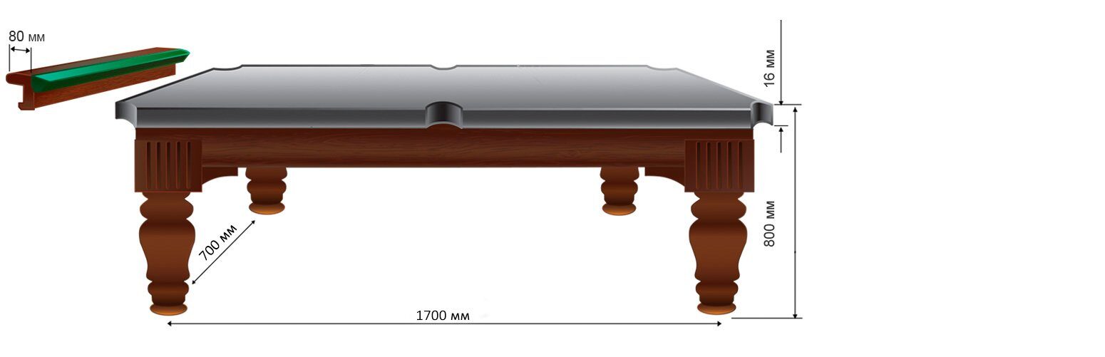 Обычно, когда люди спрашивают об этом, они ищут размер игрового поля стола. Бильярдные столы всегда прямоугольные с соотношением сторон 2: 1. Для трех разных распространенных размеров нормативные размеры, измеренные между внутренними заостренными краями подушек, составляют: