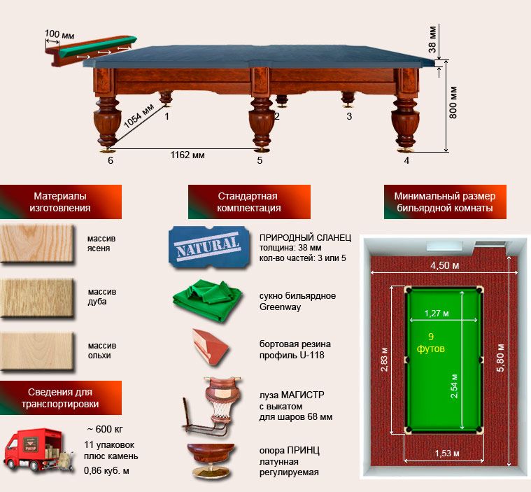 Размеры бильярдных столов: для русского бильярда, американки, снукера, размеры бильярдных комнат