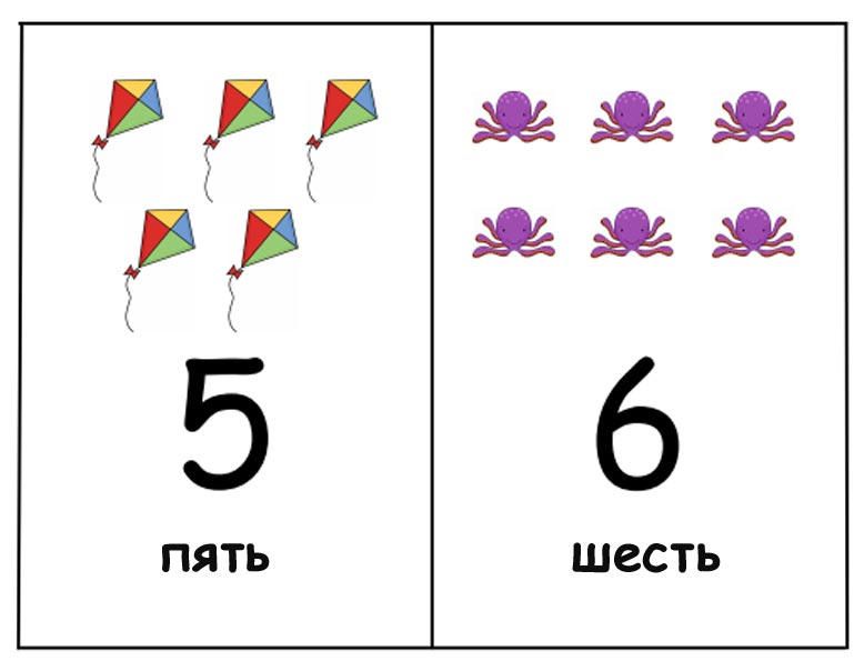 Это вспомогательное пособие помогает научить ребёнка считать быстро и правильно. Купите набор мнемонических карточек, на которых изображены цифры, а рядом – определённые предметы в соответствующем количестве.