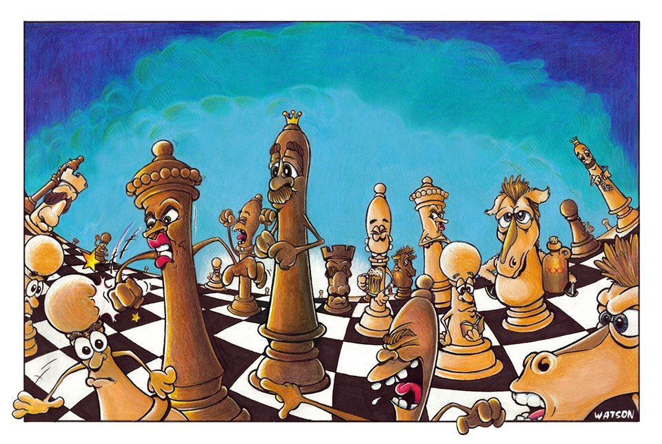 шахматы, ферзевый гамбит, гамбитные фигуры, смешно, комикс, мультфильм, мат, виббл, виббл дизайн, соревнование, приз
