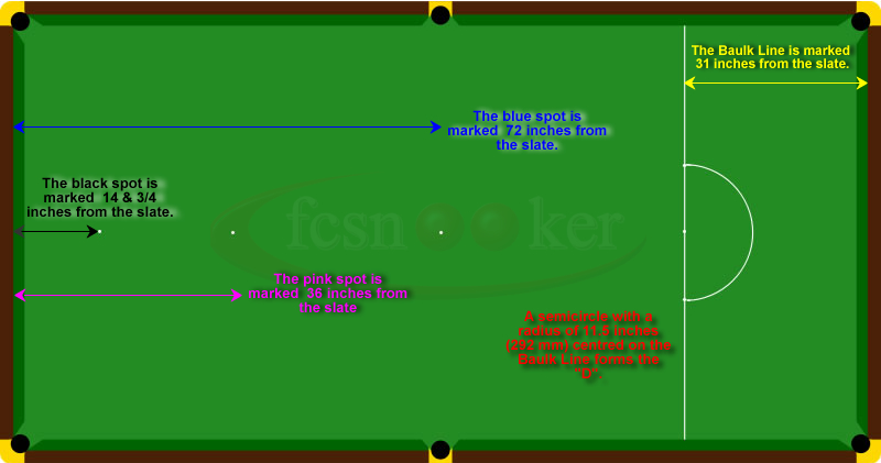 Шары для снукера немного меньше, чем шары для пула, около 5,3 см, тогда как размер кармана составляет 9 см, что делает забивание шара для снукера более трудным, чем бильярдный стол.
