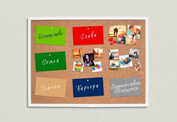 Очень крутой вариант — сделать карту на пробковой доске для заметок. Такая карта прослужит не один год, можно легко заменять желания, вносить коррективы. Кроме того, исполнение желаний будет заряжать такую карту с каждым годом все сильнее!