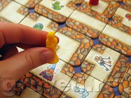 Обратите внимание, что сокровища выложены заранее: они находятся на 16 статичных квадратах, которые уже располагаются на игровом поле. Соответственно, вы сможете менять коридоры лабиринта, толкая только карточки между ними. Впрочем, этого вполне достаточно, чтобы кардинально изменить положение дел за один ход!