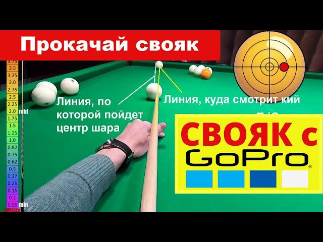 Это позволит руке «запомнить» направление удара. После чего, не меняя стойки и линии взора, движением кисти «моста» взять необходимый боковой винт и наносить удар по линии предварительных замахов. Если при таком прицеливании биток не попадает в намеченную точку, необходимо подобрать правильную точку хвата кия и правильное расстояние от моста до битка. Если подобрать такое сочетание не удаётся, то, скорее всего, у вас – неигровой кий с недопустимо жёстким, мало-упругим шафтом.