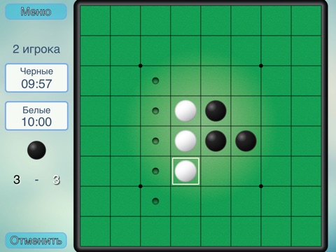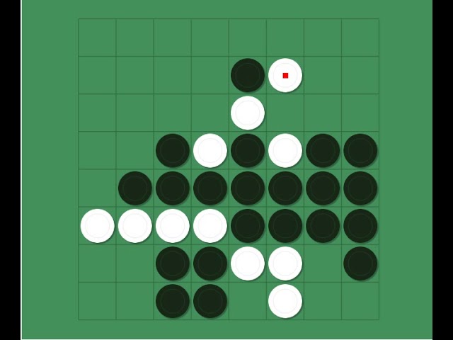- Игра прекращается, когда на доску выставлены все фишки. После подсчёта фишек победителем объявляется игрок у которого фишек на поле больше.