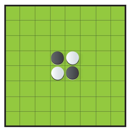 В начале игры в центр доски выставляются 4 фишки: чёрные на d5 и e4, белые на d4 и e5.