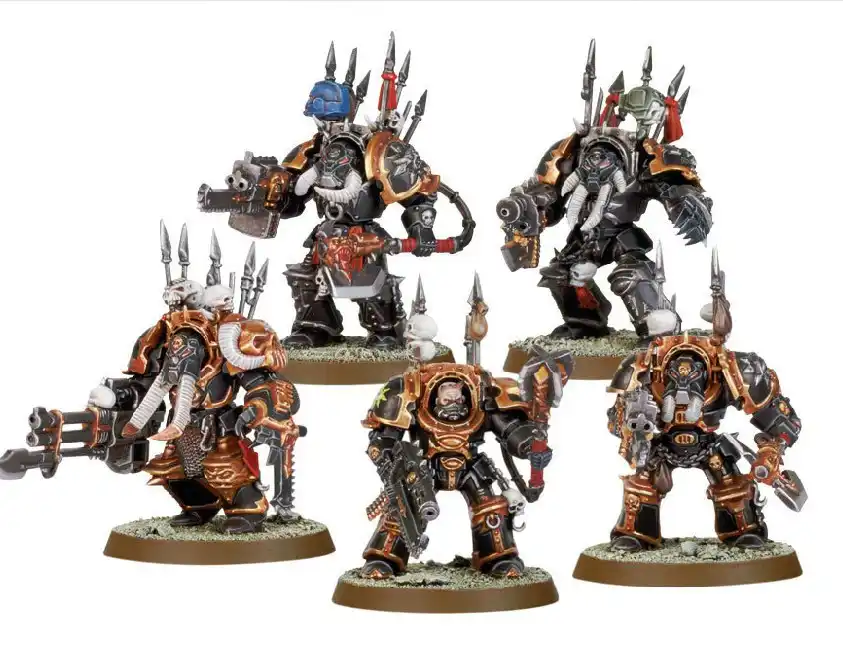 Терминаторы Хаоса — отличные универсальные бойцы. Их терминаторская броня не только делает их более живучими по сравнению с другими отрядами космодесантников Хаоса, но их огромные размеры и ужасные стеллажи с трофеями действительно выделяют их на поле боя.