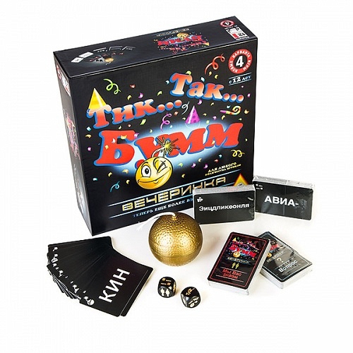 Настолка, как подсказывает название, отлично подойдёт для вечеринок как школьников, так и вполне взрослых людей. Задания Тик Так Бумм. Вечеринка заставляют пошевелить мозгами, а бомба с непредсказуемым таймером добавляет игре азарта и динамики.
