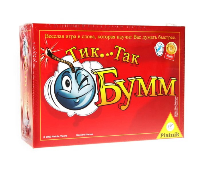 Тик Так Бумм – очень весёлая и интересная игра с простыми правилами, которая отлично подойдёт и для вечеринок, и в качестве семейной игры, а также станет замечательным подарком. В неё может играть одновременно от 3 до 12 человек – при любом количестве участников игра будет одинаково динамичной и напряжённой! И теперь вы сами вольны выбирать, в какую из разновидностей сыграть сегодня.